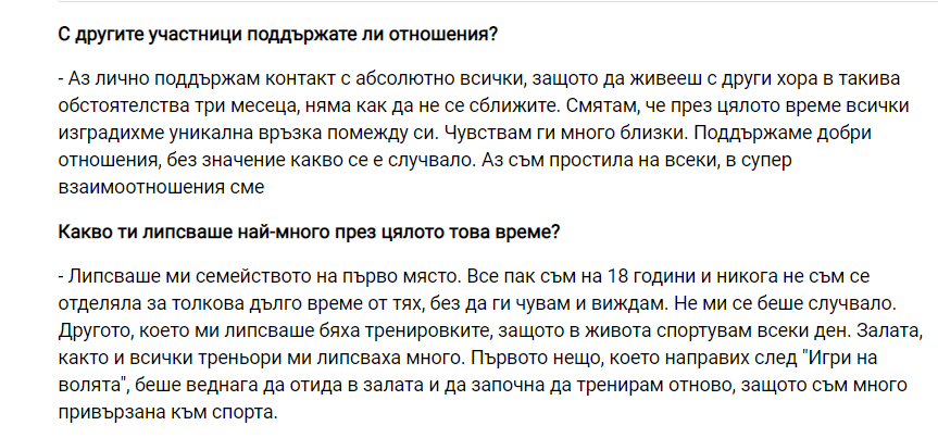 На мен пък ми се иска номинирането да не е явно, а както беше в Сървайвър. Сега един като запее в хора и много лесно други се подхлъзват с номинациите. Могат и по-искрено да се мотивират, ако са сами пред камера.