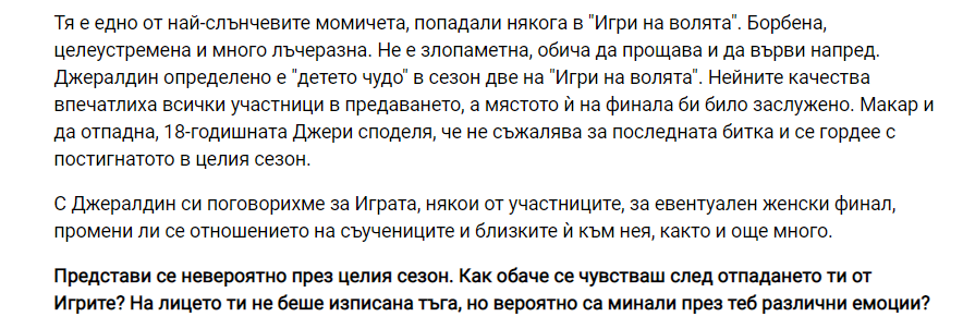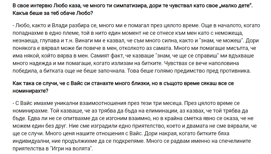Спойлерът на Гала е реалистичен. Освен, че Борислав е най-заслужилият участник /не подлежи на обсъждане/