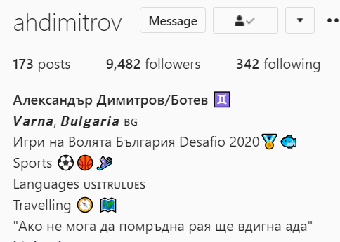 Александър се е кръстил Ботев в инстаграм профила си? OMG