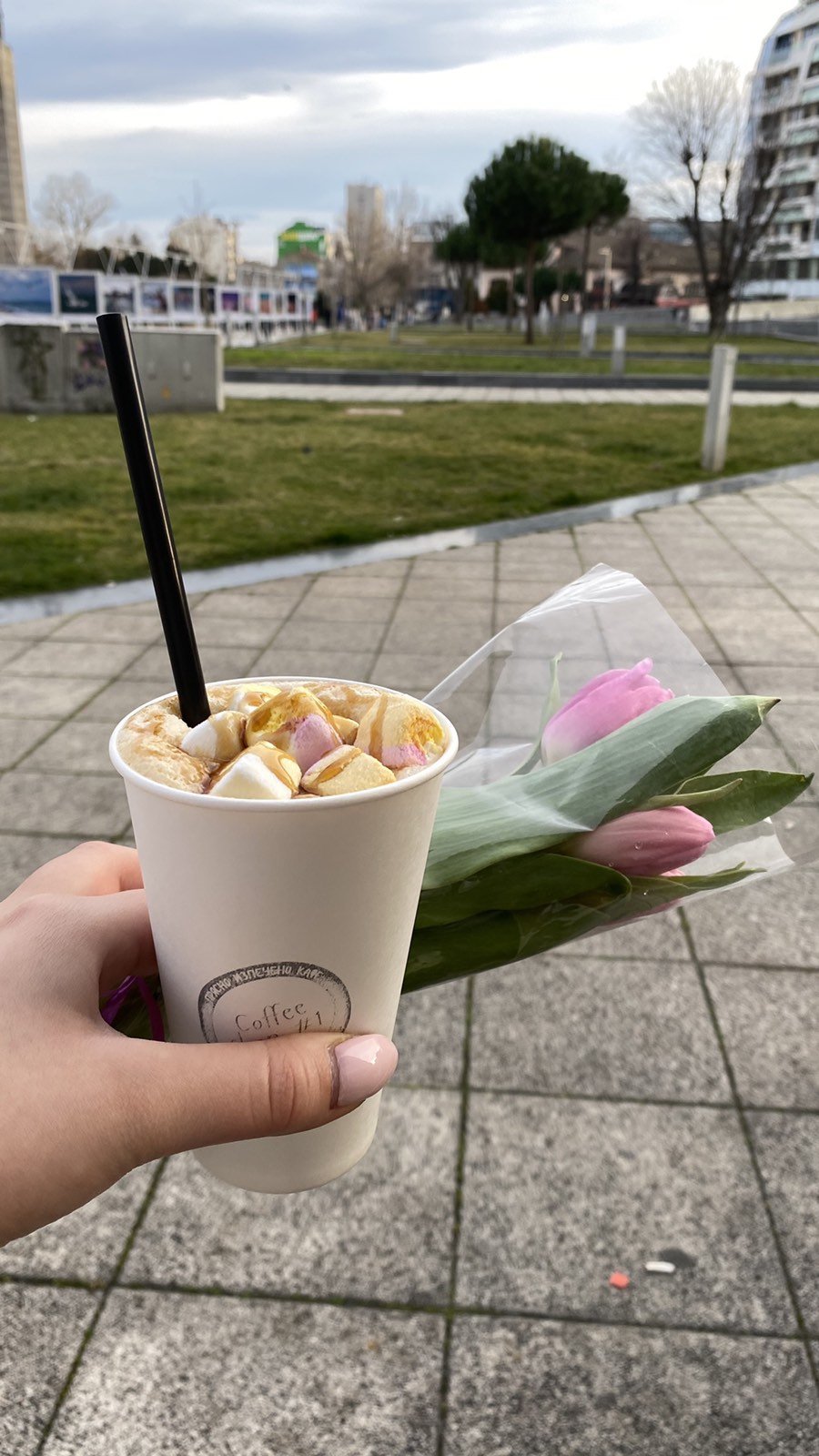 Цял ден не се прибрах, пих кафе с щерката - маршмелоу карамел и си купихме божествени лаленца.