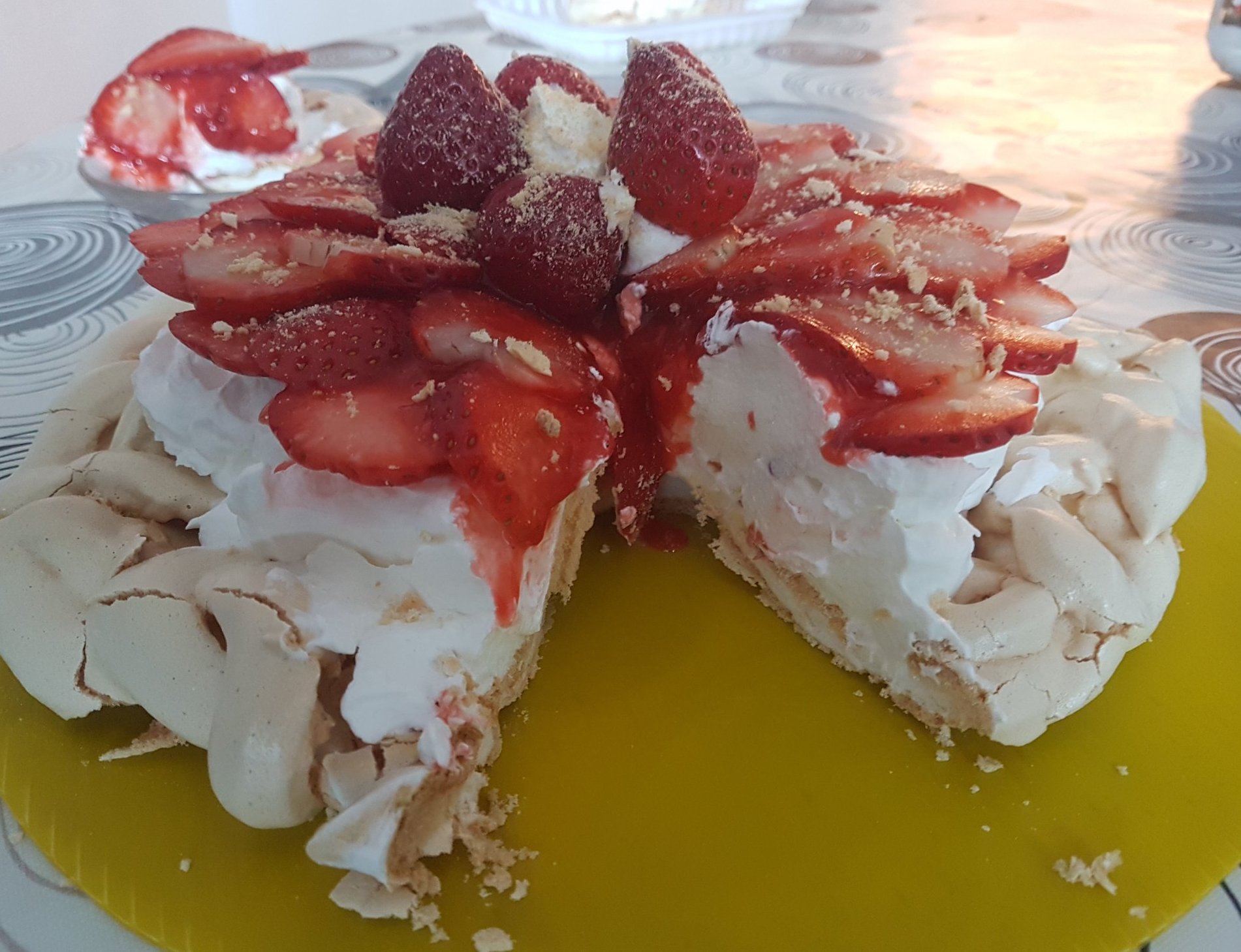 Аз си направих торта "Павлова" днес. Първи опит,  очарована съм. Stuck Out Tongue Winking Eye