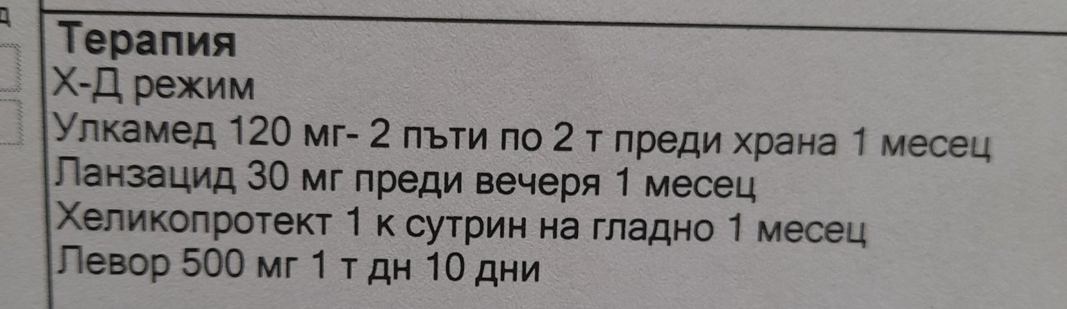 Здравейте! Днес ми назначиха това лечение срещу ХП. Какво мислите? Веднъж вече се лекувах неуспешно с оспамокс и кларитромицин.