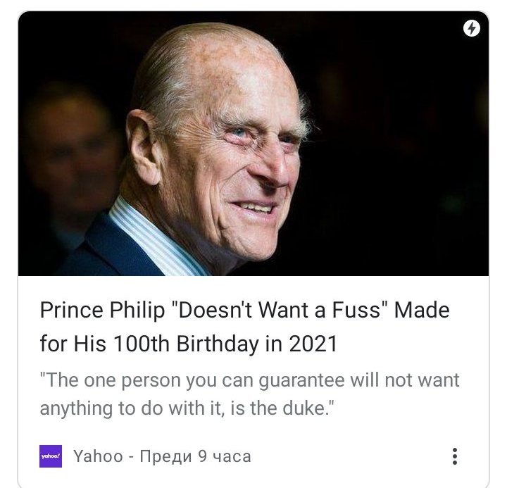 В новините ми излезе, че Филип не искал шумни тържества за юбилея си, дори пандемията да е отминала. Трудно било на организаторите да го навият за мащабни празнества.