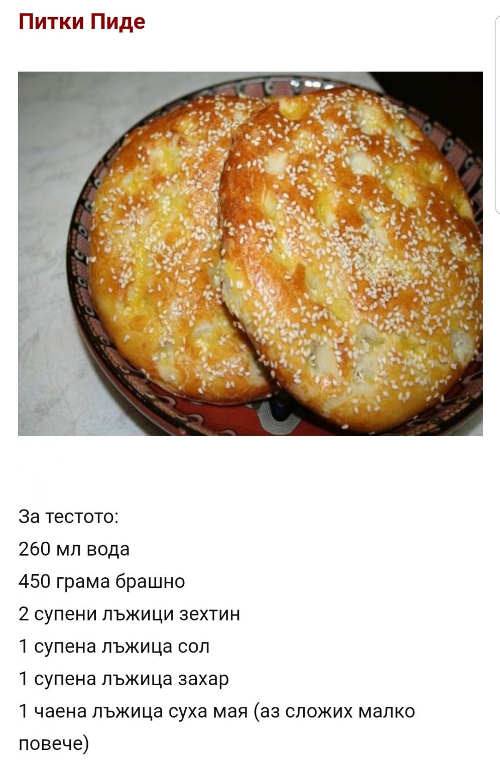 Фонсе, Пиде-та и аз правя, показвала съм я тук. Голяма питка правя.