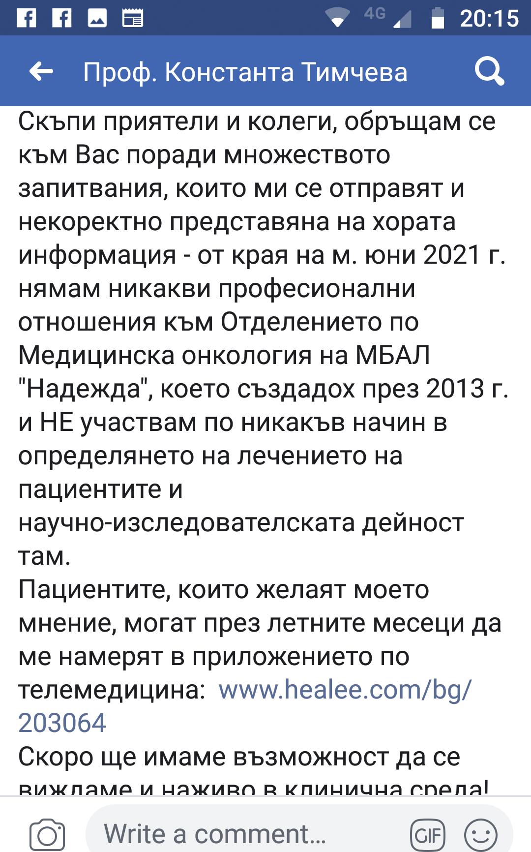 Ето какво е написала на страницата си във Фейсбук по повод работата й в Надежда на 5 юли: