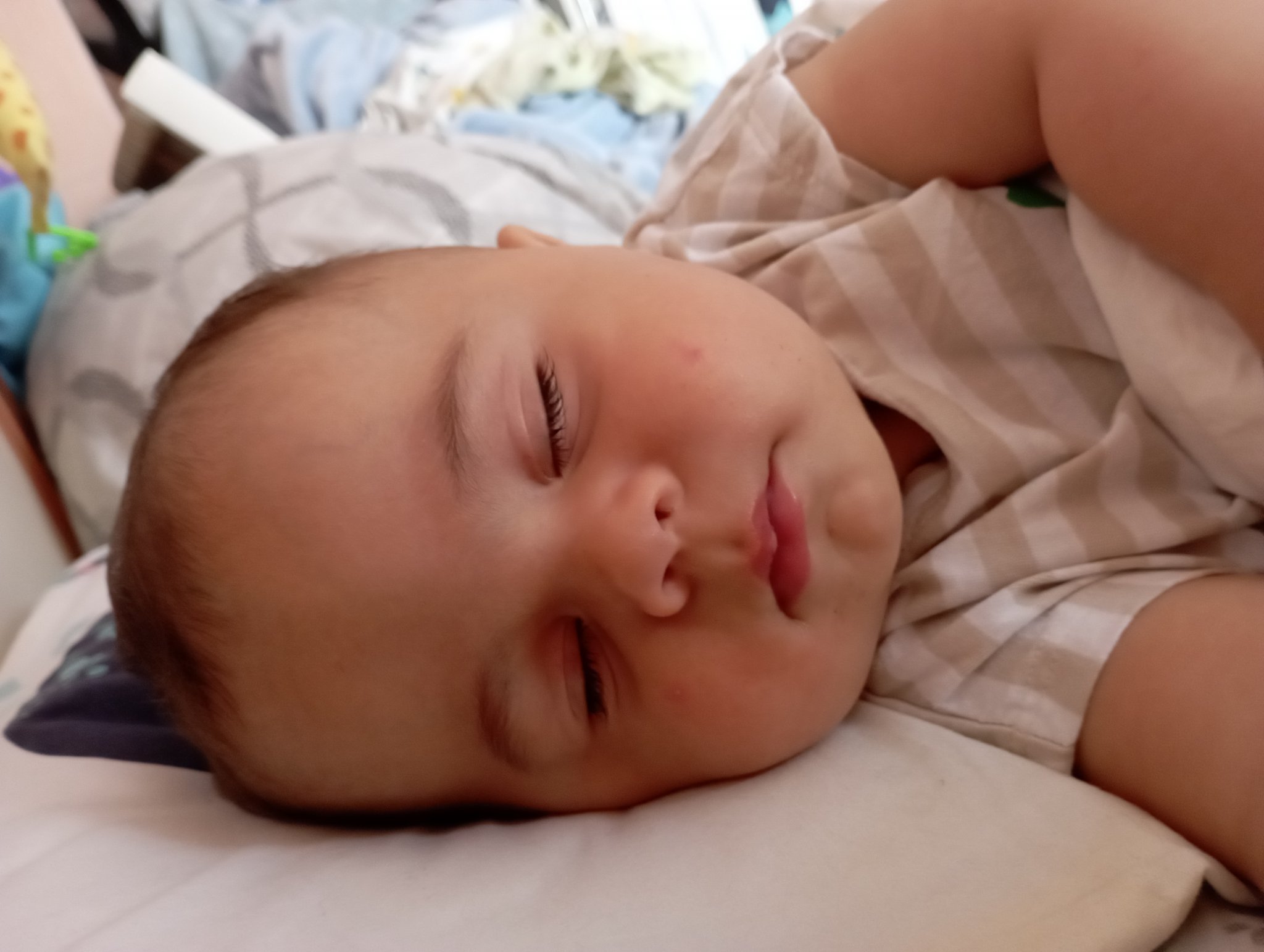 Не готвя,но то аз по принцип не готвя,а купуваме готова храна.Последно преди 10-тина дни се излъгах да правя мусака със сладки картофи.Ми те останаха сурови и ми отне 3 часа,за да станат готови за ядене.ММ ми каза да не си губя времето с глупости(той милия хич и не ми придиря,че не мога да готвя,тъй ме взе и щом за почти 18 години още сме заедно явно любовта му не минава през стомаха ). Всъщност ако се хвана сериозно нещата ми се получават добре(в локдауна се наложи да готвя),но не ми идва от вътре.Обичам да правя баници и сладкиши,но пък тях гледаме да ги избягваме...Та тъй...Стана дълго и се отклонихме.Ама да се върнем към децата.Ето ви един спящ Росен.