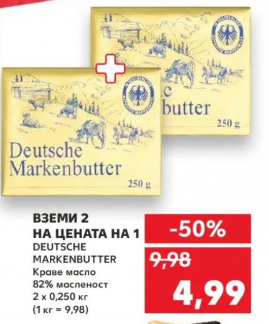 Точно това, взех от Кауфланд, както писах след това взех и от Лидъл, че покрай празниците много върви. Иначе за мазане ползвам Elle & Vire или Президент с тях няма грешка.Elle & Vire е на много добра цена  в Метро.