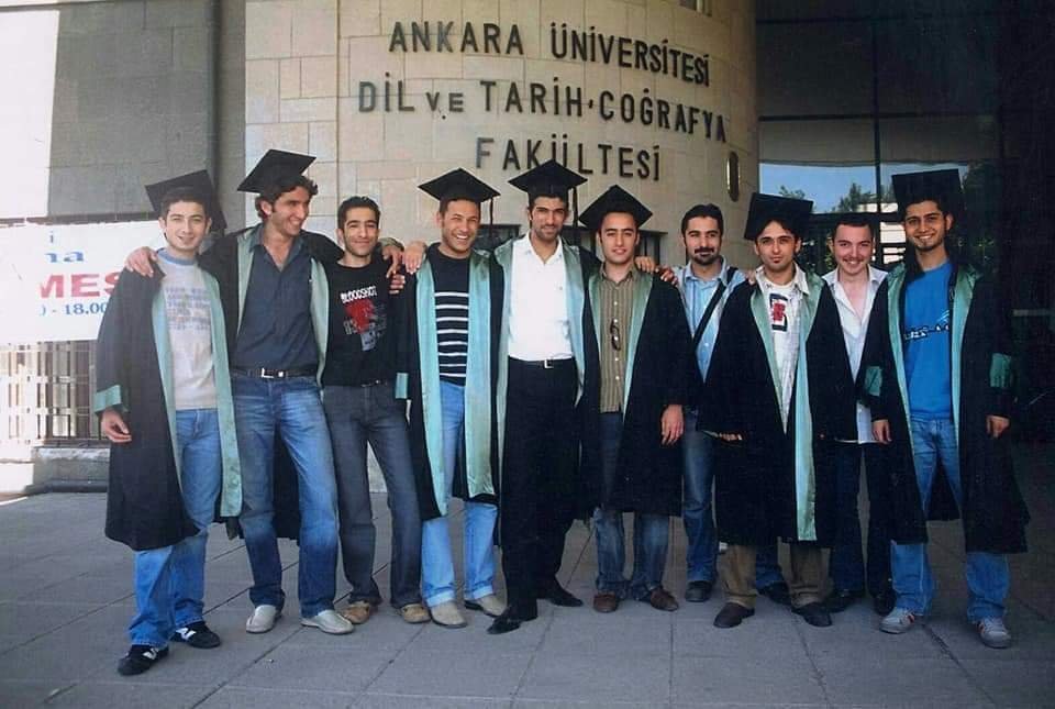 Излезнаха тези снимки - Енгин като абсулвент. Сниман с колегите си пред факултета по История, География и зикознание Анкара. Снимките са споделени от негов колега състудент Ведат Аксой: https://www.instagram.com/p/CIh99buMScd/: .