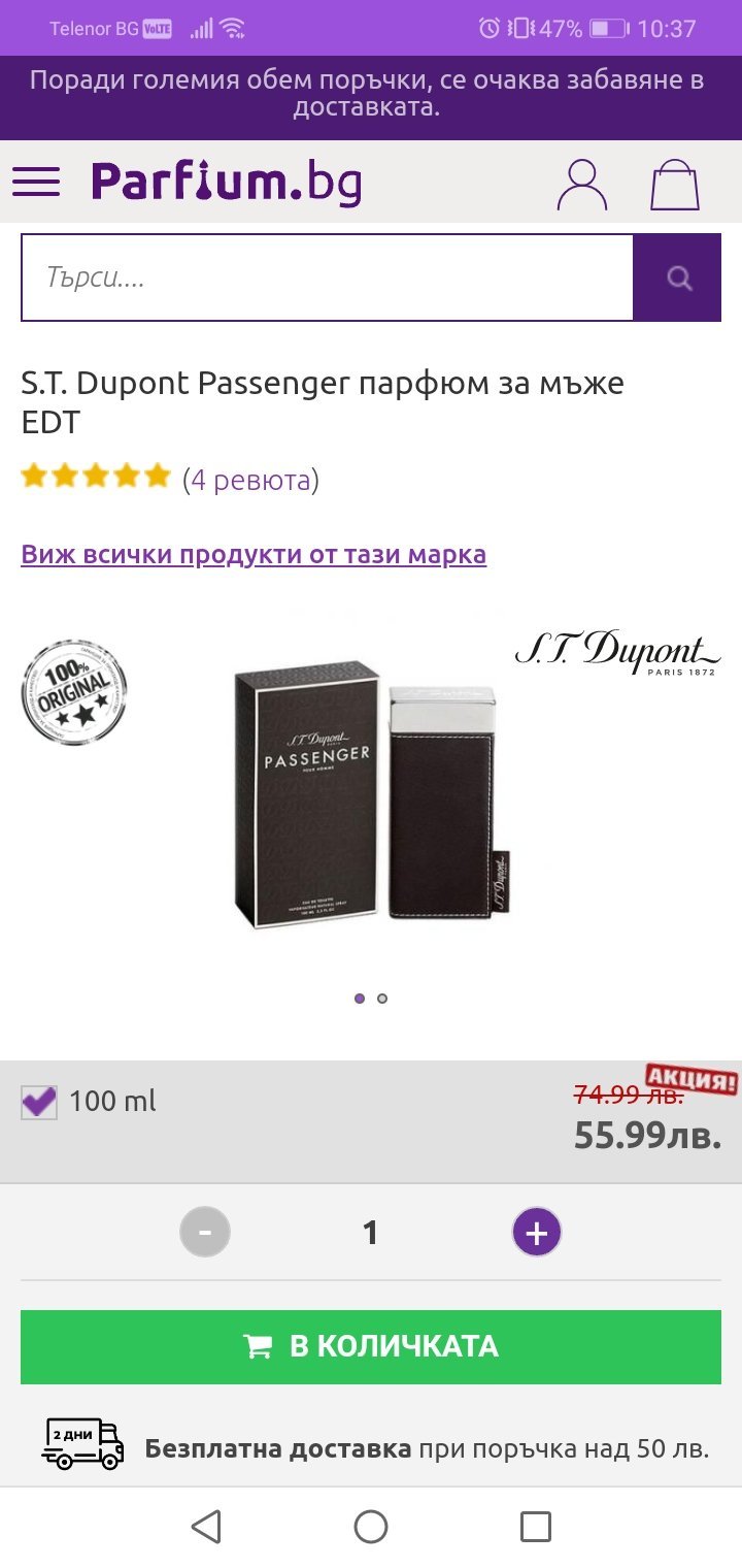 Най-популярните уебсайтове за закупуване на парфюми, споменати в темата, са Notino.bg, Elfragance.bg, Parfiomo.bg, Elinor.bg, Makeup.bg , Parfumitе.eu , Dolce.bg , Parfumibg .com , Zachoveka .com , Parfumi-shop .net , Parfu m- bg .com , Brasty . bg, Get . bg, Perfume-bg eu, Starcorp Burgas, Baraka, Perli.bg и Parfum.bg.
