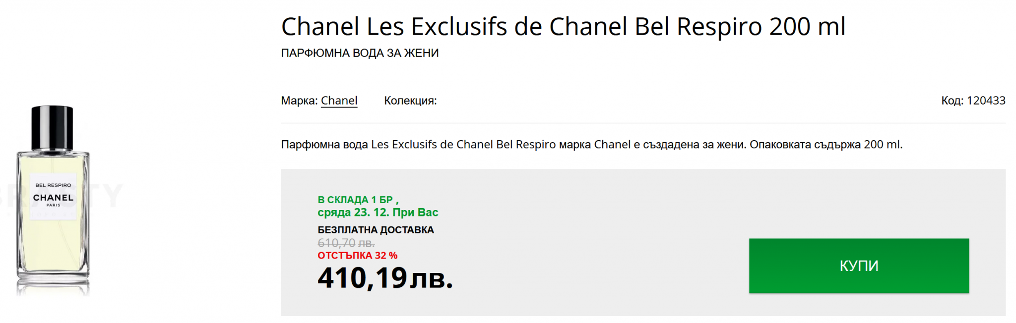 + пак много добра оферта от Les Exclusifs колекцията на Chanel - Bel Respiro https://www.brasty.bg/chanel-les-exclusifs-de-chanel-bel-respiro … a-za-zheni-200-ml
