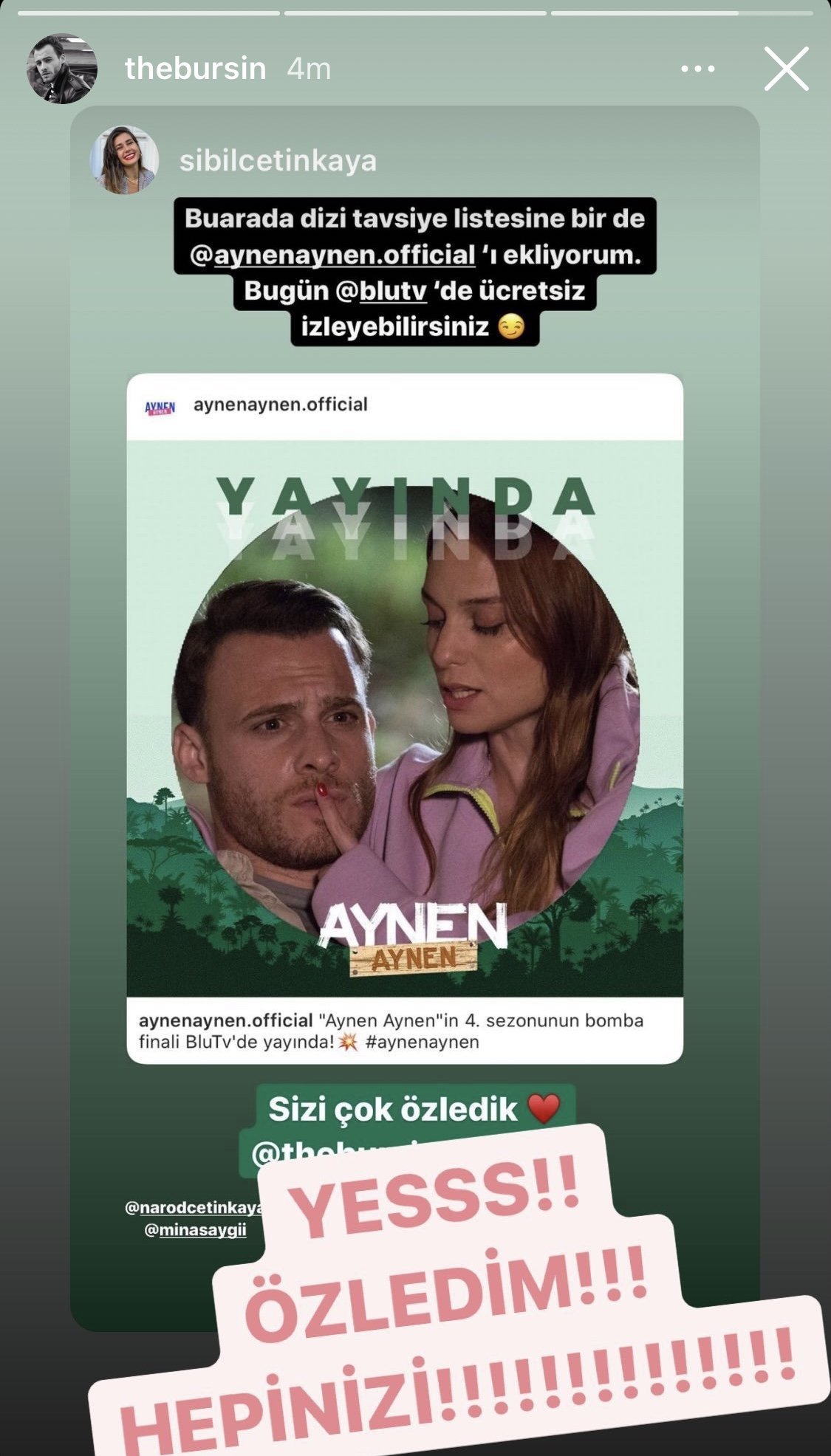 Кога е сниман 4 сезон на Aynen Aynen,аз съм гледала отделни епизоди, кога е финалът и кога е сниман, че Керем сега го промотира?