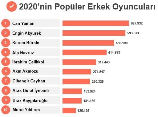 за актриса Демет е на 2-ро място,а Йозге - на 5-то