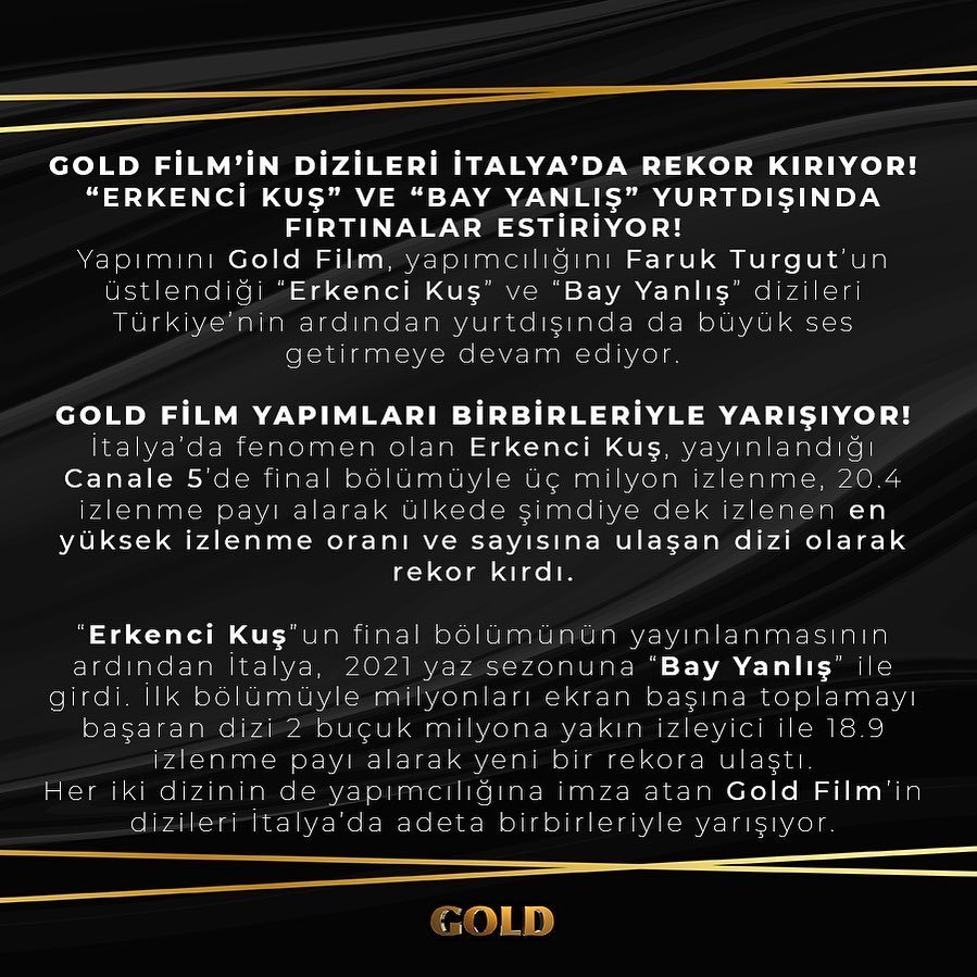 От @goldfilmyapim: "Телевизионните сериали на Gold Film „Erkenci Kuş“ и "Bay Yanlış” предизвикват бури в чужбина"