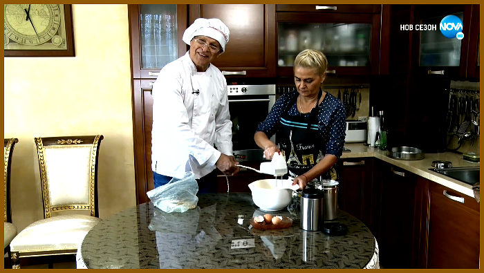 Любе-Спасови ме изненадаха, явно са с богат опит в посрещане на компании, нямаше стрес и кършене на ръце, нямаше отбиване на номер. Аз ги мислех вкостенели пенсионери Relaxed, а те се оказаха интересни хора! Дафинка готви умело и явно вкусно, Любето пък ме зарадва с отказа да пипа яйцето с ръце, защото "не е хигиенично". Simple Smile Единствен кусур им връзвам за суровите яйца в крема, аз такова не хапвам. Grinning Манчев пък, два десерта, та два десерта, ми ако ще и три да направи, щом може, проблемът е за вместимостта на гостите! Simple Smile