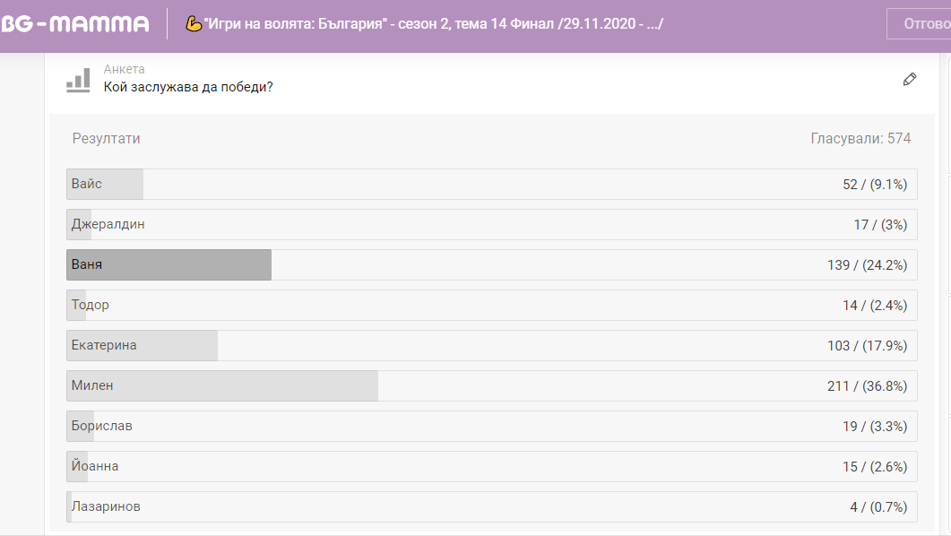 Фаворити | Милен | Боби | ХХХХХХ | ХХХХХХ | Милен | Боби | Боби | Милен | Милен |