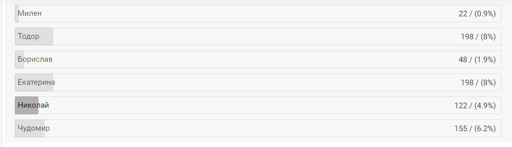 15 | Александър | 8 | 9 | 23 | 0.818 | 30.435% | 7 |
