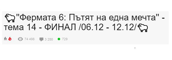 🐑''Фермата 6: Пътят на една мечта'' - тема 14 - ФИНАЛ /06.12 - 12.12/🐑