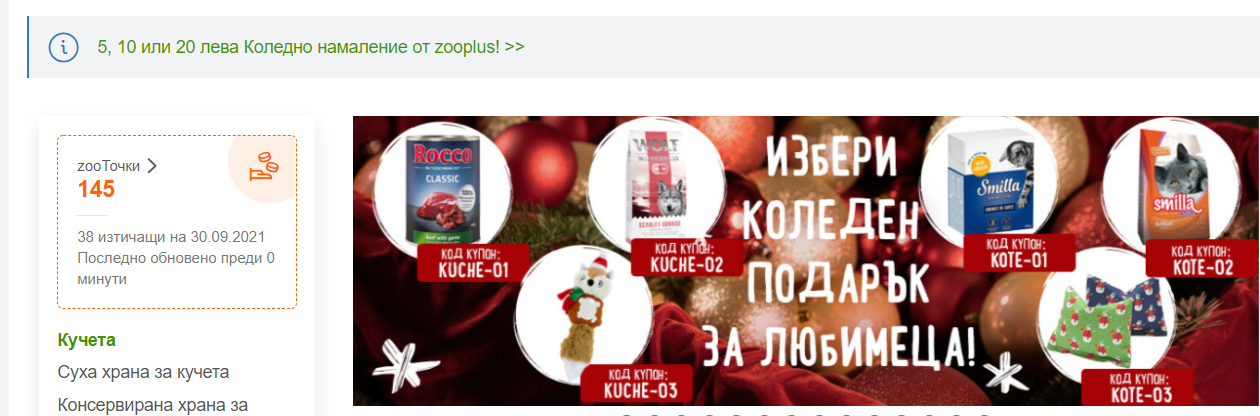 В офертите примерно в случая се виждат кодовете за дадени артикули, а горе в реда е паричната отстъпка, нея я има и като следваща оферта. Реално това ми е четвърта или пета поръчка мисля и вече свикнах да проверявам дали няма нещо, което мога да ползвам. Предният път получих едно много готино одеалце за Страх, което той си го ползва активно. Още с първата поръчка си пуснах и спестовен план за година, като от него получавам допълнително още 3 процента отстъпка. Дотук имам 12 лв отстъпки, но не помня колко струваше абонамента за година. Единствено не бях прочела в темата, че може клиент да ме препоръча и да получим зооплюс точки и двамата и си се регистрирах сама.