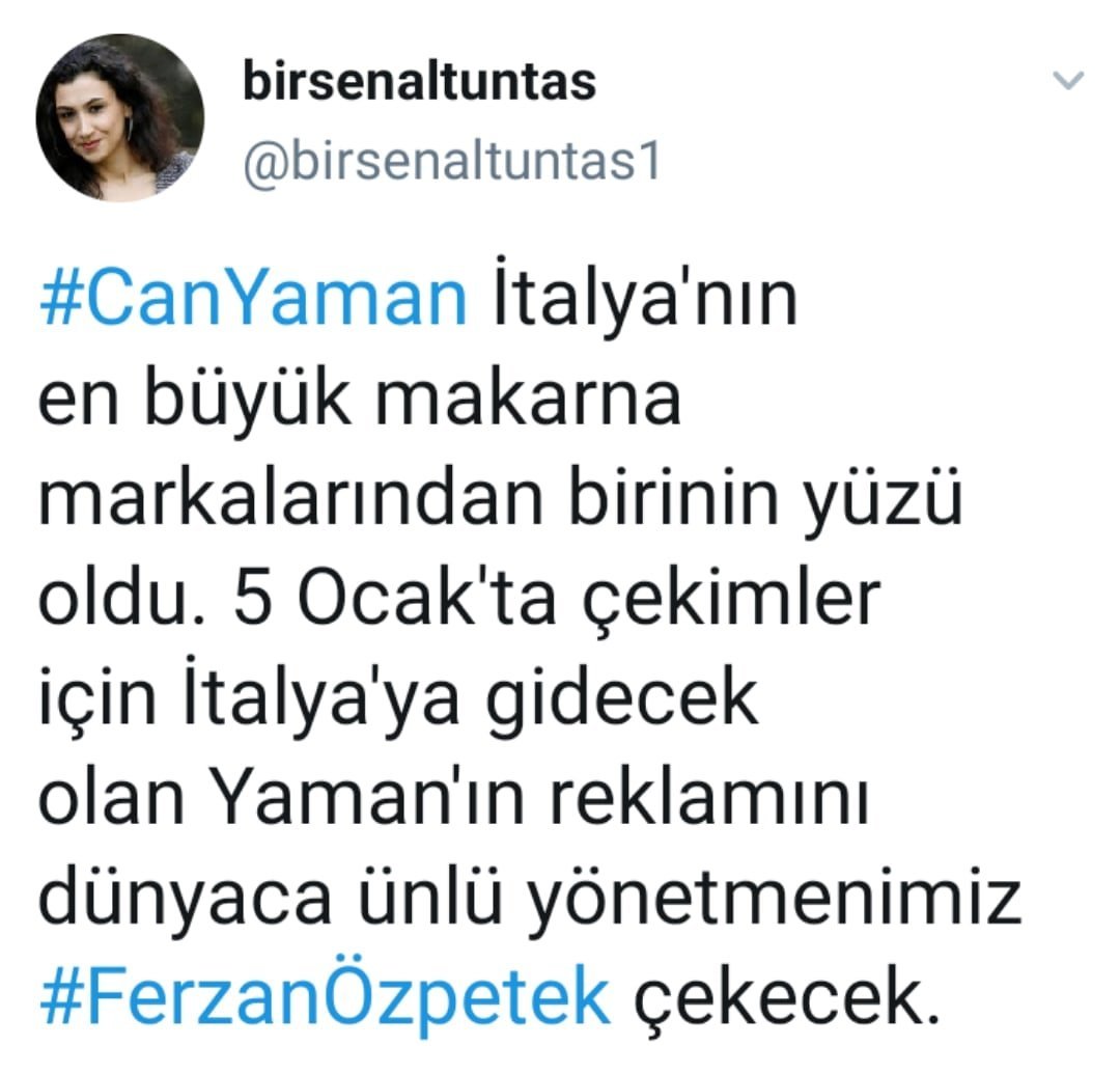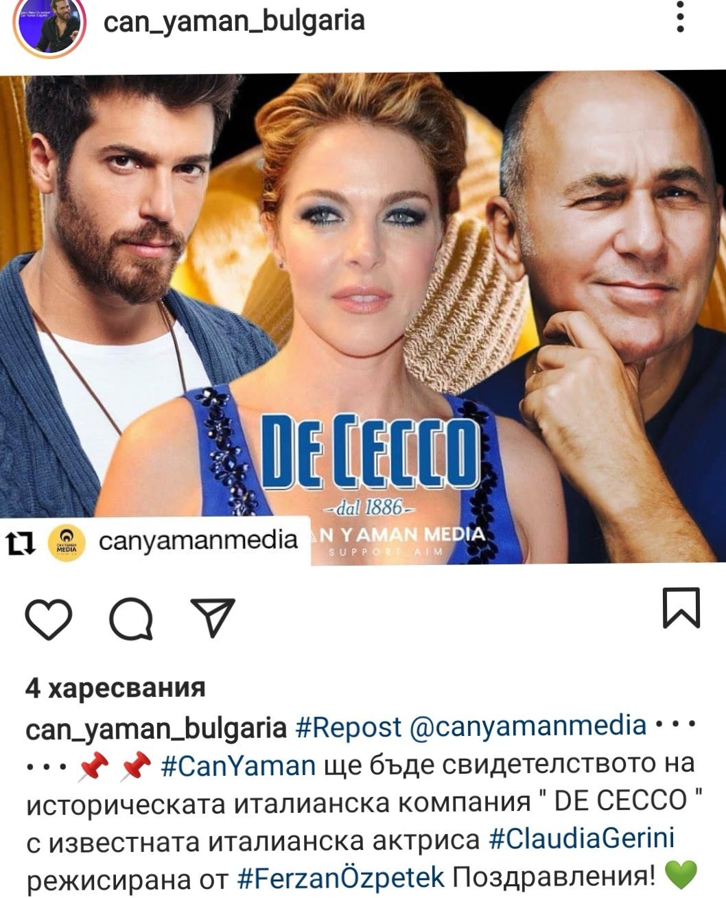 #CanYaman_става лице на известна италианска марка макарони.За снимките на рекламата той отива в Италия на 5 януари, а те са поверени на известния режисьор Ферзан Йозпетек.