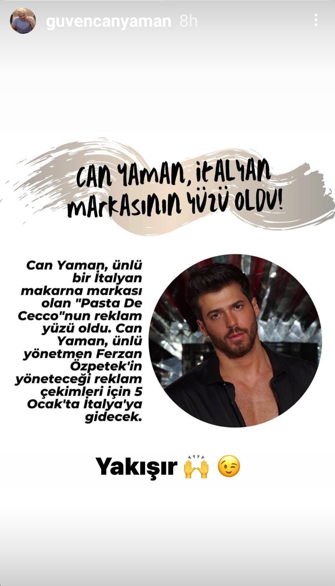 Днес #CanYaman подписа споразумение с важна италианска марка и важен договор за чуждестранен сериал, като по този начин осигури подкрепа за представянето и износа на Турция.Най-сърдечни поздравления.