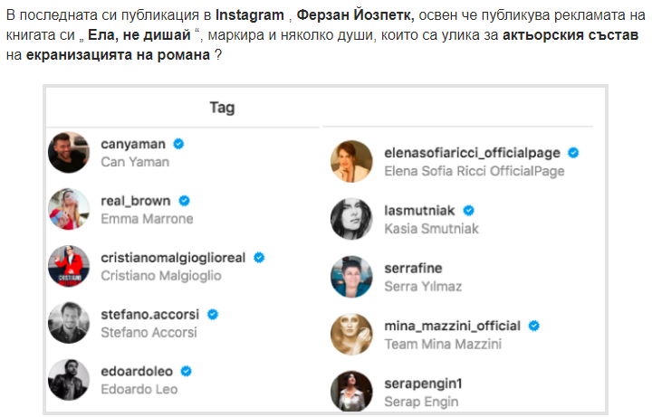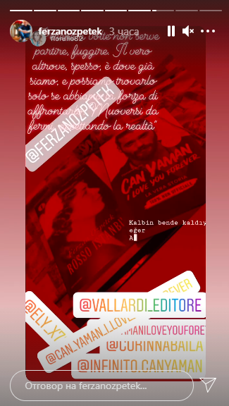 Публикцията на Ферзан от днес в ИГ с надпис "Grazie!" https://www.instagram.com/p/CIx2HLapOUe/?utm_source=ig_embed
