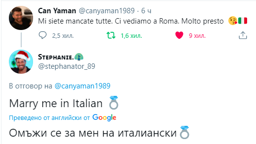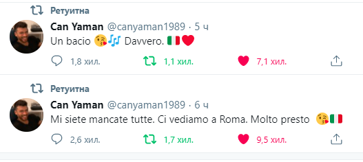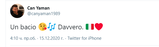 Италианките очакват съвсем скорошно пристигане на Джан в Италия. Да не забравяме, че го чака участие в предаване. В подкрепа на тези им заключения е и публикуваното от Андреа Карпентиери, който ще лети за Рим на 5 януари. Мислех, че е от мениджърския екип, но не е. Актьор е. Или ще участва в същото предаване, или има нещо общо с проекта на Ферзан Йозпетек.