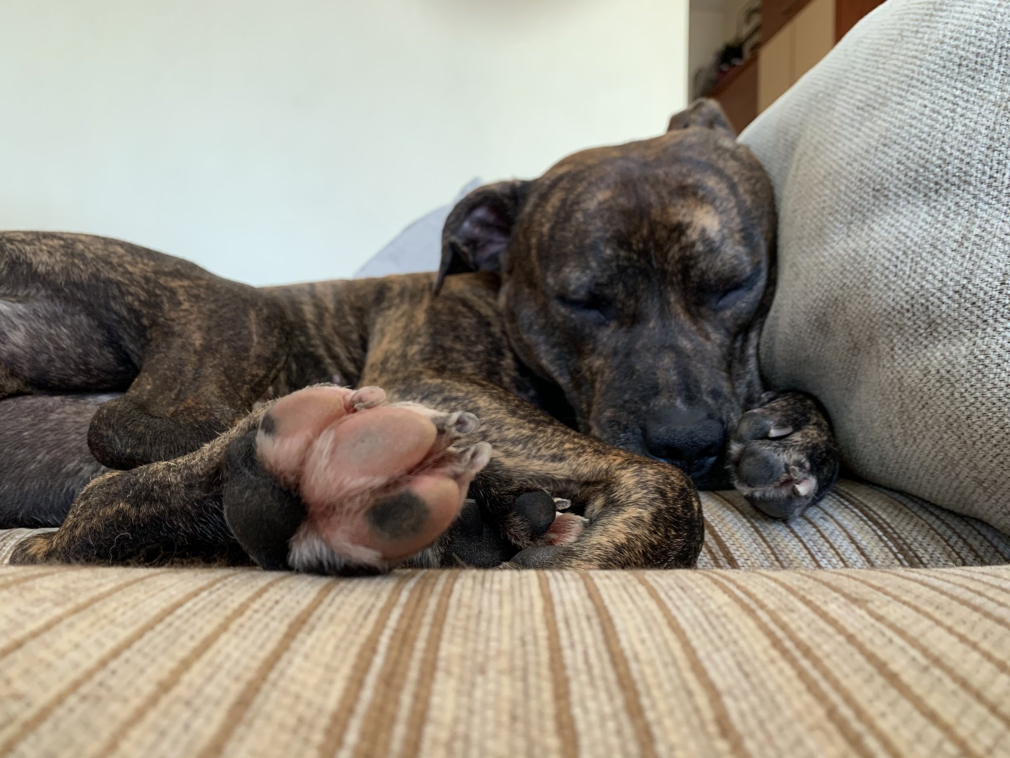 Много обича да се катери по масите и секцията и да се излежава там. Май се мисли за котка.