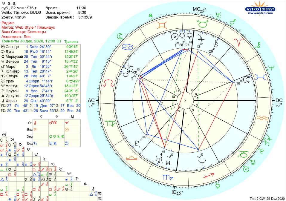 Аз нямам намерението да ми се прави задълбочено разглеждане на въпроса, съобразно наталната карта. По скоро го приемам като новородено същество със собствен живот и съответно препоръки, от порядъка на това къде е добре да бъдат разположени важните планети като Марс, Венера... Това е, най-елементарно и най-общо положително разположение на най-важните планети и аспекти, които се формират през януари.