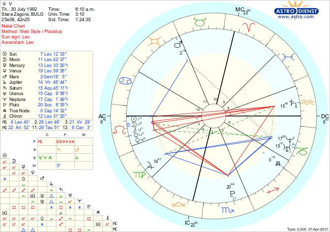 Управител на 11ти дом (венера) също афликтирана от  Сатурн и Плутон, пак в безплодния знак лъв. Тук тя е управител и на 4ти дом - отношенията с майката също вероятно са проблематични.
