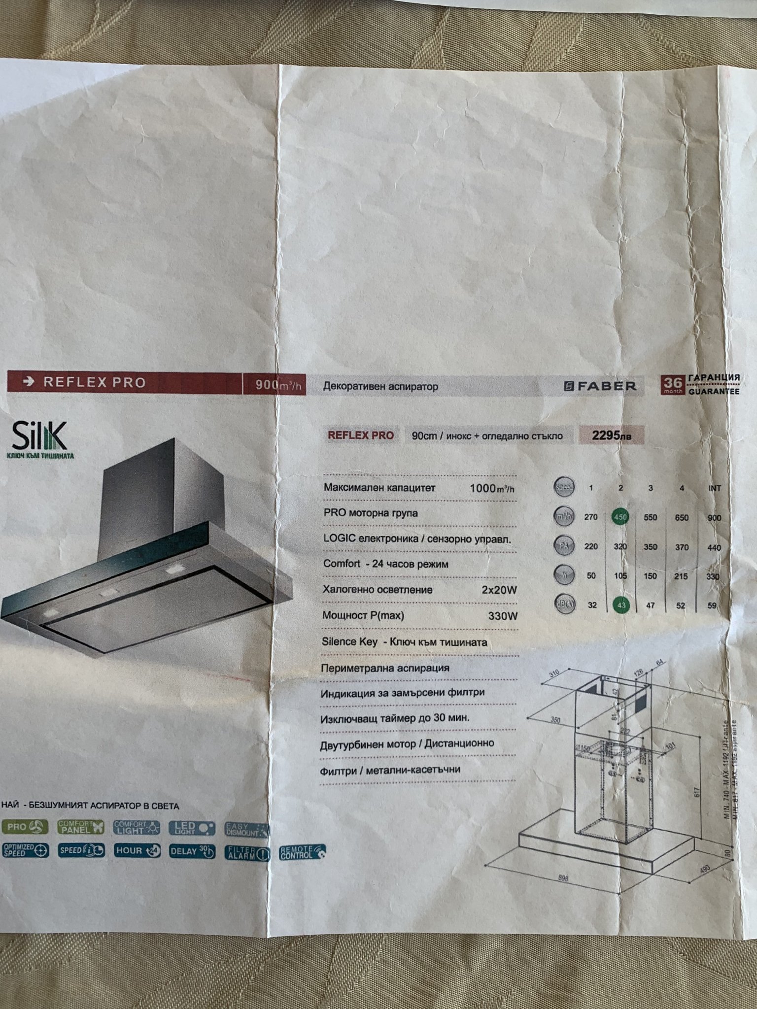 Относно аспирацията, знам, че кубатурата се умножава по 10, и така се получава аспиратора с каква мощтност трябва да е. Аз нашия го взех по тази схема, помещението е хол с кухня - 27 кв.м. Аспиратора на макс е 580 куб.м. Винаги работи на 1-ва степен, от три. Много рядко на 2-ра. Първа е 270 куб.м, 2-ра е 450 куб.м. Не се умирисва хола, само барплот ги разделя.