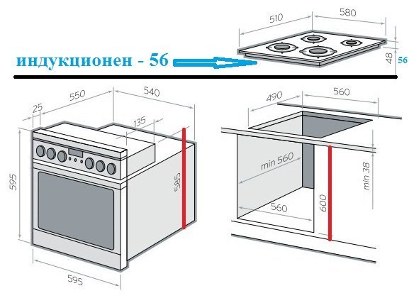 Трябва да се вземе предвид дебелината на плота (евентуално 38 мм) и вида на стъклокерамиката, понеже индукционните са около 56мм.