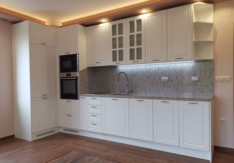 Мивката - разбирам, че я искаш над плота, това зависи и от неговия материал естествено, но за мен под плот е много по-удобно. Живяла съм в чужбина на квартира и имах такава мивка, ако мине вода зад ръбчето е супер непрактично за обиране, освен това винаги имам неприятното чувство, че това място не мога да го почистя изцяло. Иначе в къщи винаги е била под плота, за мен много по-практично(особено ако разливаш обилно вода, както си писала) едно движение с попивката или каквото там ползваш и водата е обратно, където и е мястото.