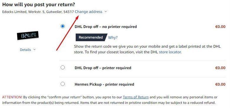 Купих клавиатура от немския амазон, но искам да я връщам. Доставката беше на адрес на превозвача в Германия.