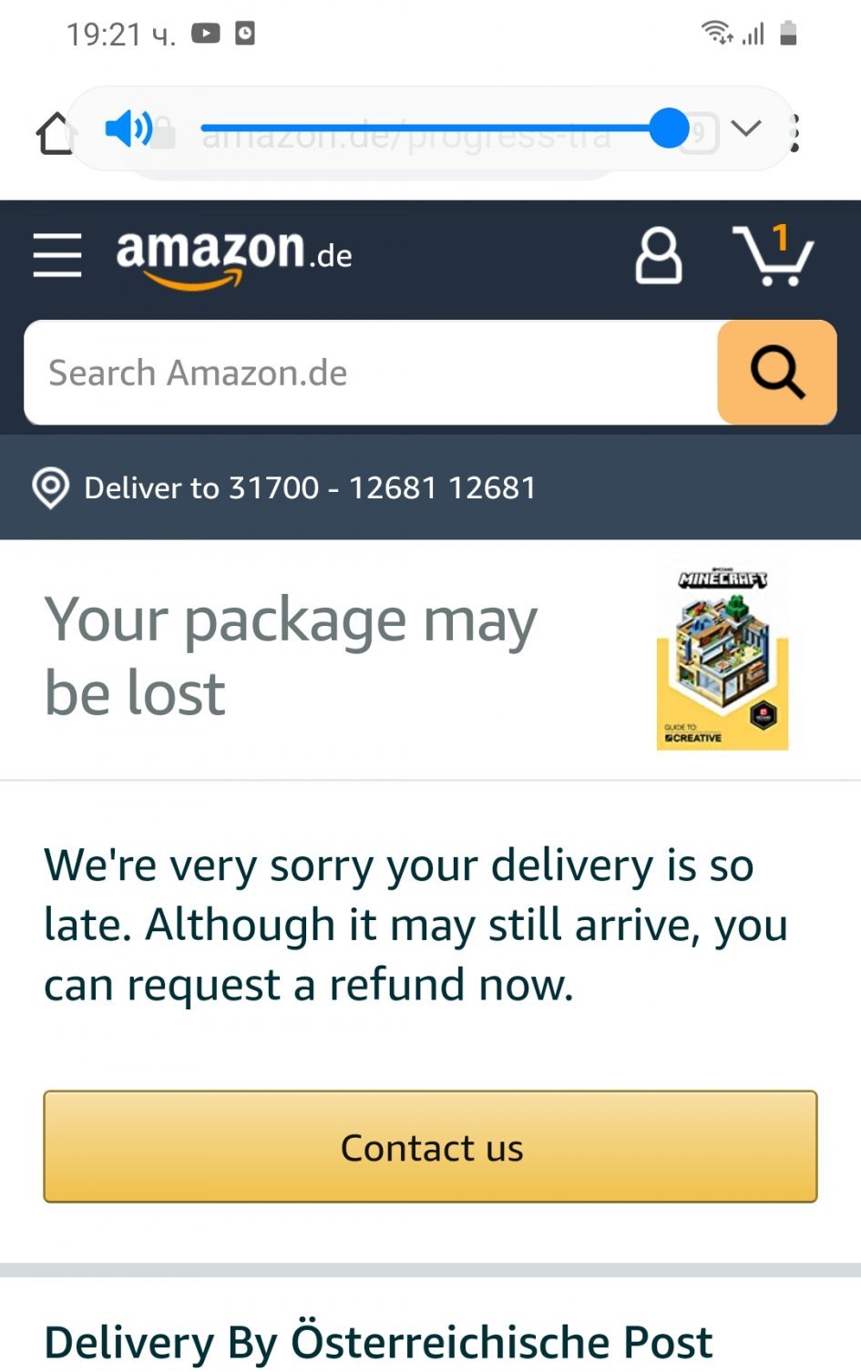 Според мен върви утре си я потърси в пощата ти по адрес. Може да има малка вероятност да е там. Амазон са коректни.