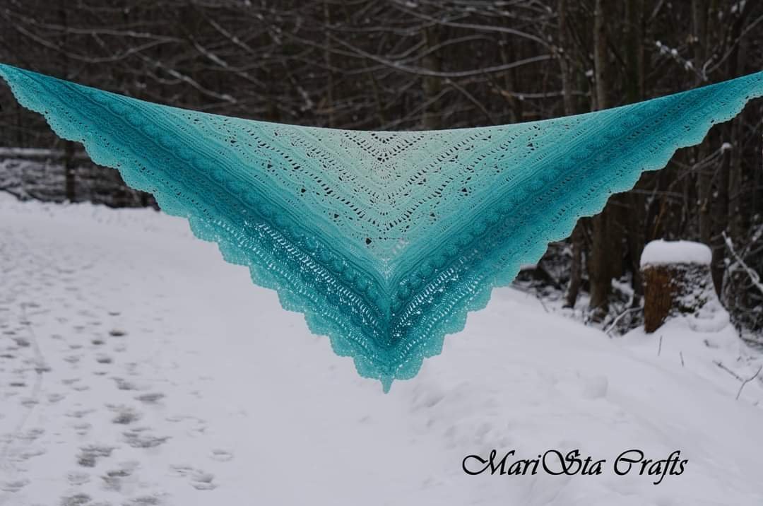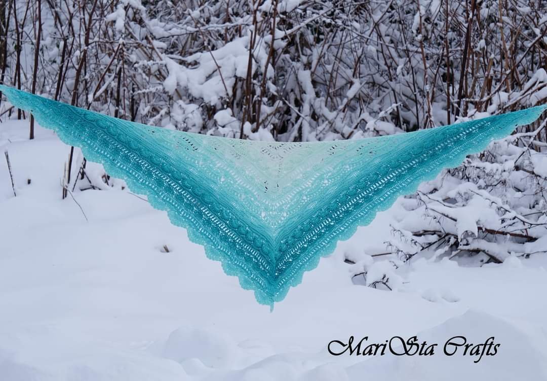 Още един шал по модел на Julita Janicka  - Coquette. Ще търся някъде да го наснимам на сняг, за да излезе добре лазурното синьо.