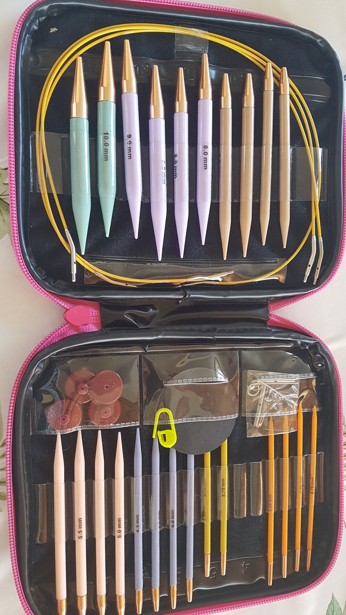 Полата ми си все още е недоплетена Simple Smile. Просто шапката се получи като приказката за копчето и балтона. Мъжът ми ми подари ето тези куки - след като гледаше, че търся да си купя хубав комплект със сменяеми корди (чудех се между Hiya Hiya и Addi), човекът решил, че ще ме изненада, но като не знае в подробности какво търся, решил, че ей този комплект (пак от Алито) ще ми свърши работа (без да е наясно с качеството на това, което аз търся Simple Smile ):