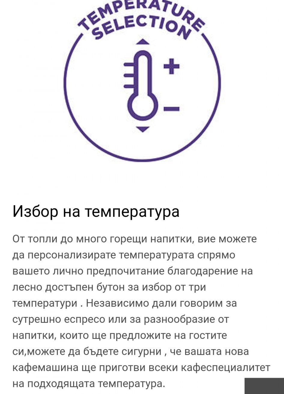 Има и опция сам да си избираш температурата 😏 Аз обичам да ми е по-горещо и все си загрявам предварително чашите с топла вода.