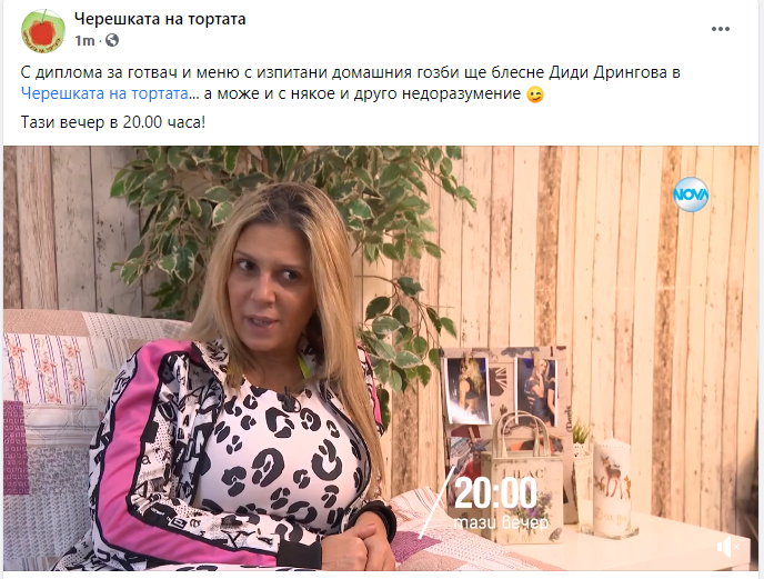 И на мен. Не разбирам защо чак толкова критики отнесе. Да, понаправила се е като чалга дива и си е качила няколко години отгоре, но жената е възпитана, неглупава, държа се добре с гостите си, готви добре, постара се доста, менюто й беше оригинално и явно вкусно, щом всичко се изяде, държа се много добре, десертът беше чудесен.