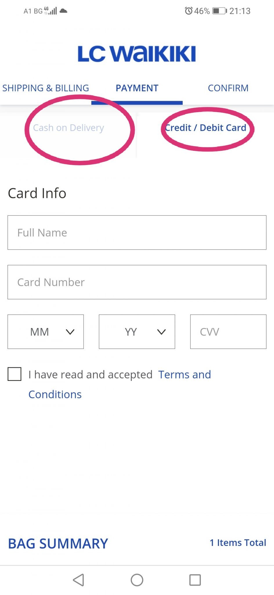 Малко кофти се намира първия път. В ляво е плащане с наложен, вдясно е с карта.