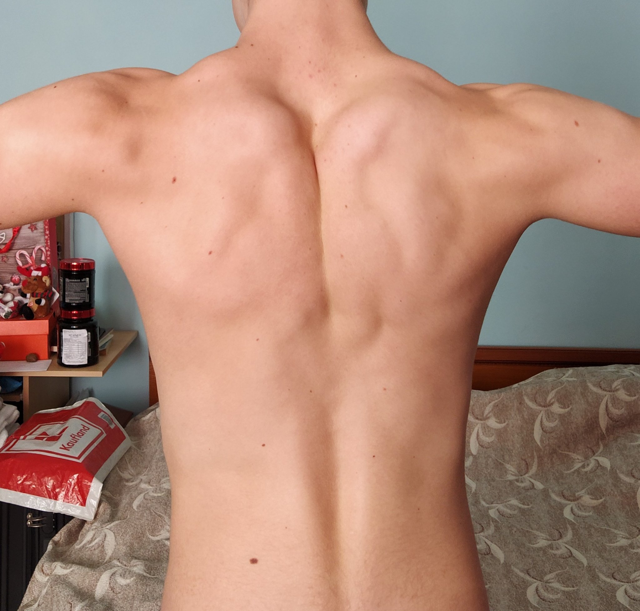 Попитах моя хубавец (отначало на 10 започна със собствено тегло на стрийт фитнес площадките, а от 11 годишен посещава фитнес ежедневно)