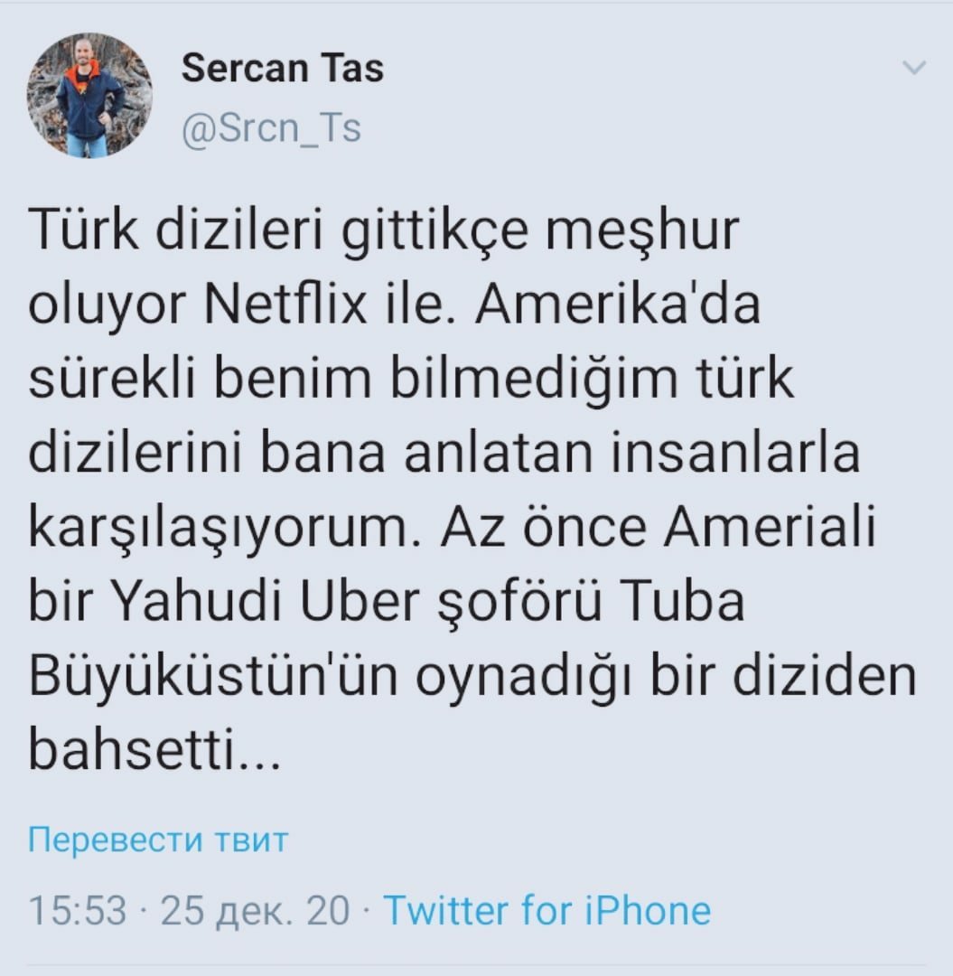 Турецкие сериалы становятся все более известными благодаря Netflix. Я всегда встречаю людей в Америке, которые рассказывают мне о турецких сериалах, которых я не знаю. Водитель еврей Uber такси только что рассказал о сериале с Тубой Бюйюкюстюн, в главной роли ...