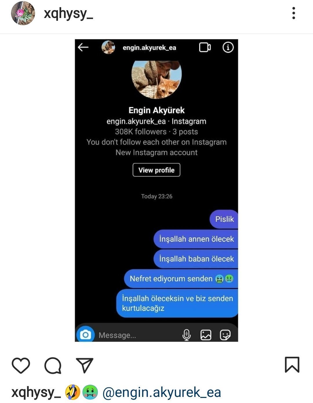 Добавям нещо много тъжно. Ужасно е, че все пак и в реалния живот има много лоши хора. Знаем, че съвсем скоро Енгин си направи акаунт в инстаграм. И сега един му праща ей такива съобщения, които са си клетви направо, да умре майка му, баща му, мрази го и т.н. Пуснах доклад за блокиране. Възмутена съм от лошотията по хората.