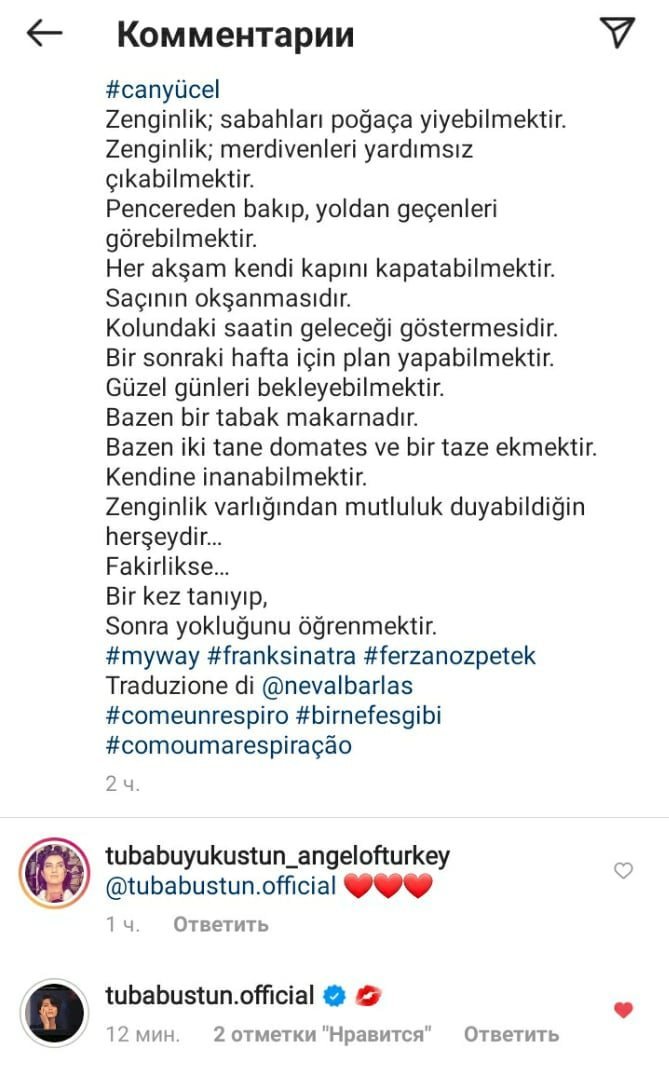 Прекрасная актриса, долгое время отсутствовавшая на экранах, продолжает радовать поклонников своими постами. Туба Бюйюкюстюн, излюбленное лицо экранов, очаровывает своей естественной красотой, получила высокую оценку в социальных сетях благодаря своей фото без макияжа.Фотография красивой актрисы, которая не стесняется позировать с нулевым макияжем, раскрывает ее чистую красоту, а фотография, которой она поделилась с пометкой «Может быть, нет…», получила высокую оценку.