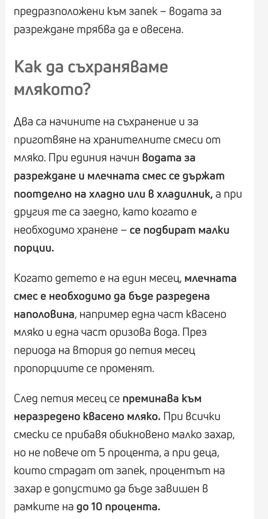 Квасено мляко със захар за бебе на 1м?