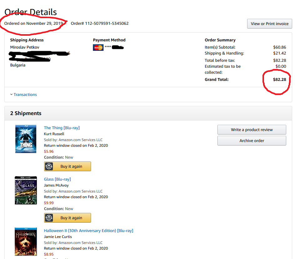 Ето това ... покупка от Амазон САЩ на стойност 82 долара. Направих поръчката, след около 3-4 седмици ми се обадиха от пощата (не ми пратиха съобщение, ами направо ми звъннаха), казаха ми че имам пратка за взимане. Отидох, взех си я и това беше. Нищо не съм плащал.
