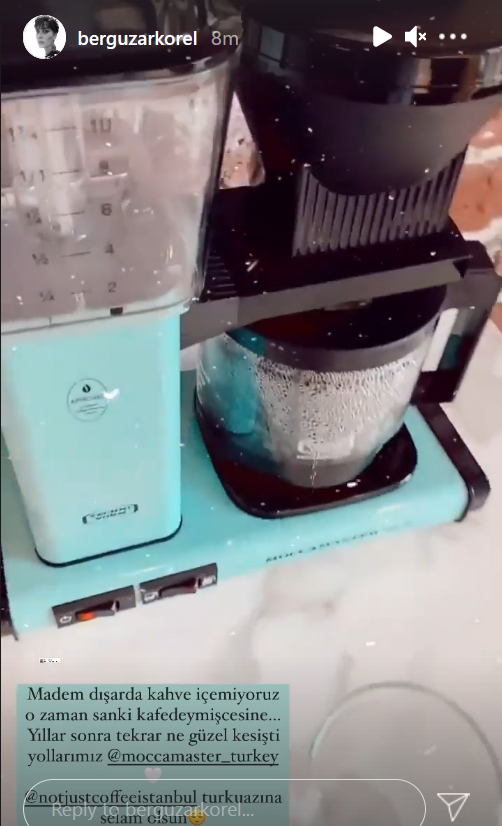 Кафе със спомени от Берг Coffee "Если мы не можем пить кофе снаружи, то здесь похоже на то, словно мы в кафе… ☕Много лет спустя, как красиво пересеклись наши пути @moccamaster_turkey и привет моей бюрюзовой кофейне @notjustcoffeeistanbul😌"