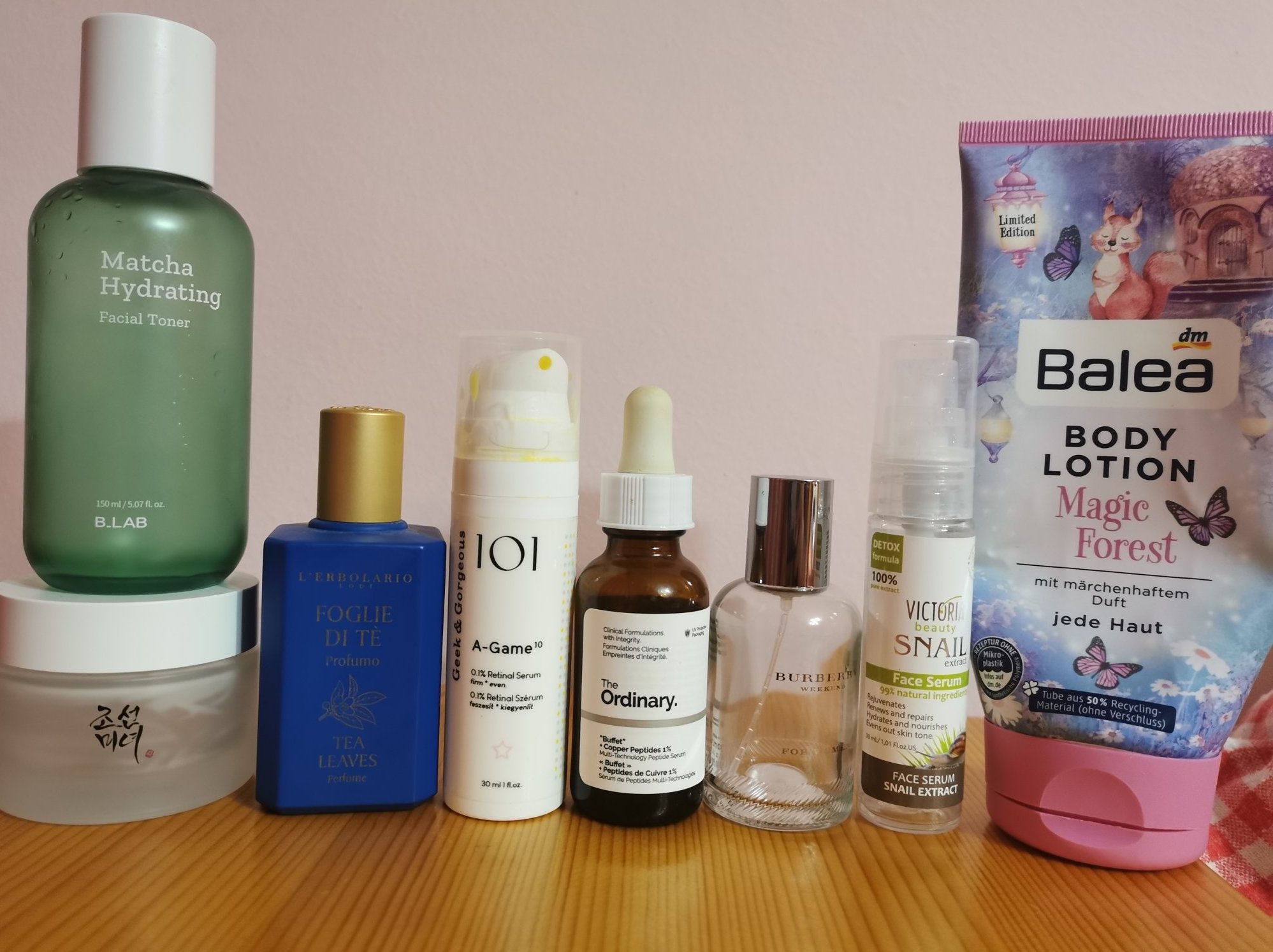 B_Lab Matcha Hydrating Facial Toner - прекрасен базов, хидрариращ тоник. Съдържа вода от зелен чай, алантоин, пантенол и хк. Консистенция на вода, позволява наслояване. Неароматизиран. Падна ми се в бюти кутия, но е наистина много добро попадение, и бих го купила отново и самостоятелно.