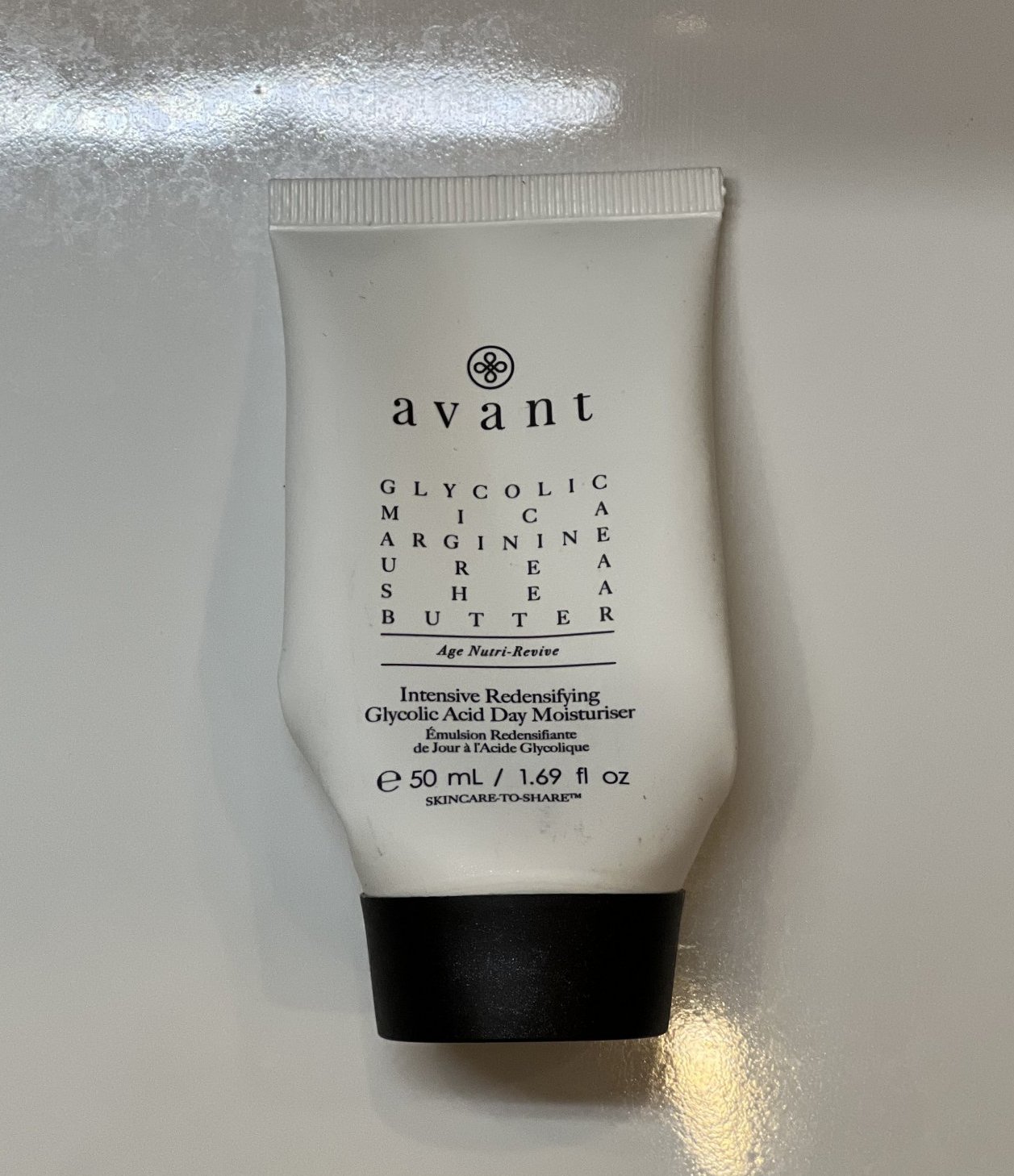 Дневен крем за лице Avant - не ми се описват всички действия и съставки на крема, затова оставям снимка. Авант винаги са много обстоятелствени, но каквото и да си говорим са едни нечудодейни кремчета с шеа. Ако някой се интересува от гликоловата киселина - в пренебрежимо количество е. Този крем конкретно има един мегафин блясък от миката, който аз трябваше да прикривам с пудра, защото не обичам “озаряващи” ефекти върху лицето. Иначе ми допадна, като цяло харесва и марката, основно, защото не се отразява зле на акнеичната ми кожа и хидратира добре. Този конкретно не бих го повторила заради блясъка на миката.