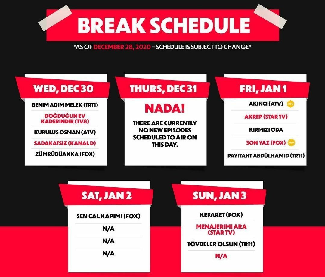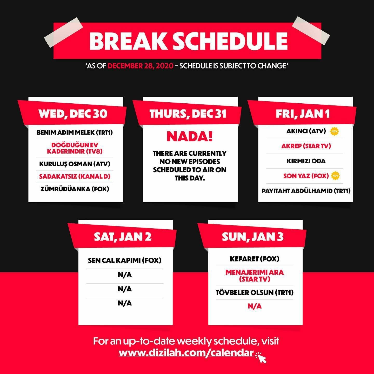 Идвам за кратко с една нова информация от днес! На 02 януари 2021 година в съботната вечер от всички сериали ще бъде излъчен само нашия, тъй като останалите имат почивка! Фенове на сериала ни се надяват това да се отрази положително върху рейтинга на нашия сериал! Аз се надявам на същото!