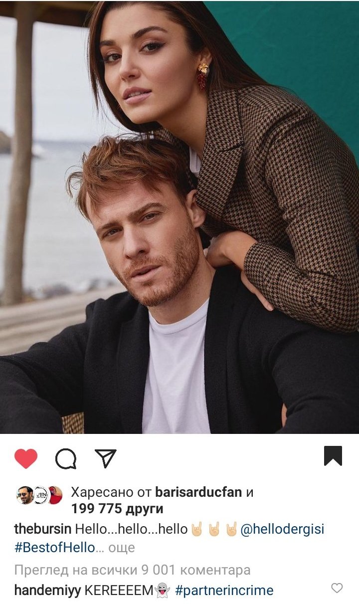 Ханде си сподели корицата, че е най-сейфти вариант. А Керем избра най-скучната снимка. Хм?! 🤔 Отгоре на всичко Ханде дори не лайкна снимката, а само я коментира... Не знам какво да си мисля. От една страна отричат и се държат “приятелски”. Но, ако са толкова близки и само приятели, няма да им пука и ще са много по-отворени в качването на снимки, коментари и тем подобни. Както беше в началото. Както са другите от каста. А при Керем и Ханде има едно пазене, което се усеща. “Гузен, негонен бяга” е положението май, май... 😉 Както и да е, понеже те не споделят любимата ми снимка от фотосесията, аз ще го направя, а съвсем скоро няма да издържа и ще се преоблека. ❤